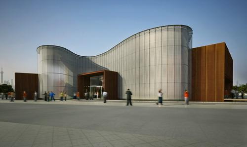 展馆形似一个呈波浪般起伏的水晶杯,又有大海中航船的意象。